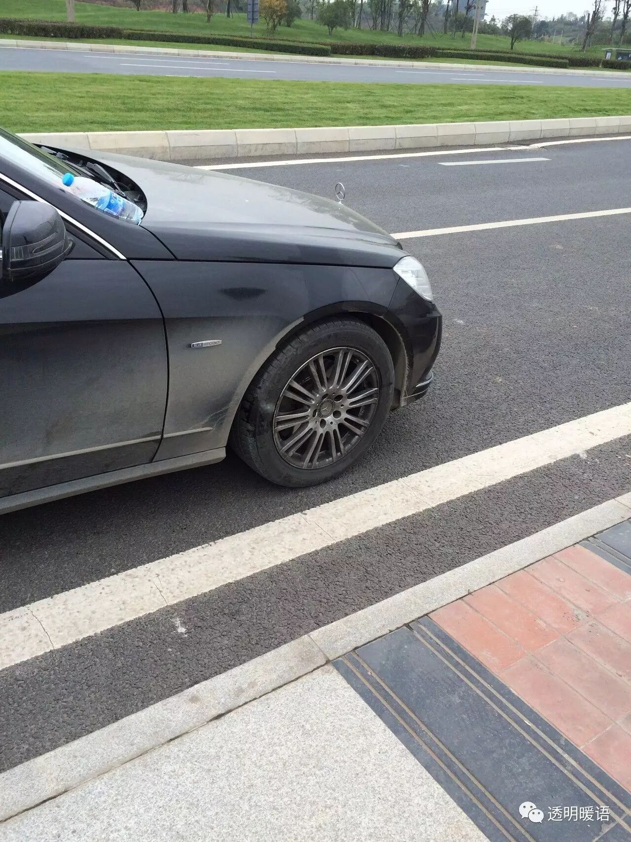 这大奔被当成工程车在用,前轮鼓了好大个包。。。 #壕的世界我们不懂